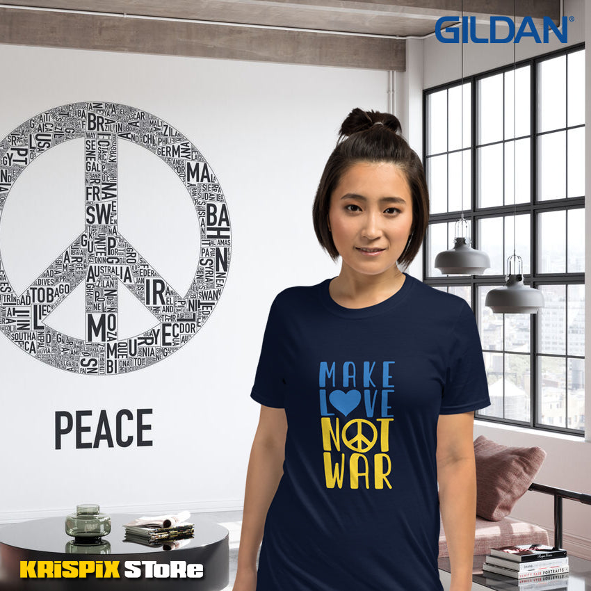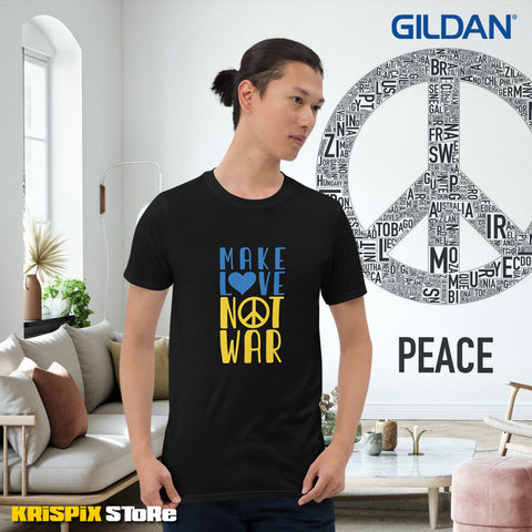 Ce T-shirt "Make Love Not War" unisexe Gildan est fabriqué dans un tissu de coton durable et plus lourd, il présente une encolure et des manches à double piqûre, ce qui lui confère une plus grande durabilité !